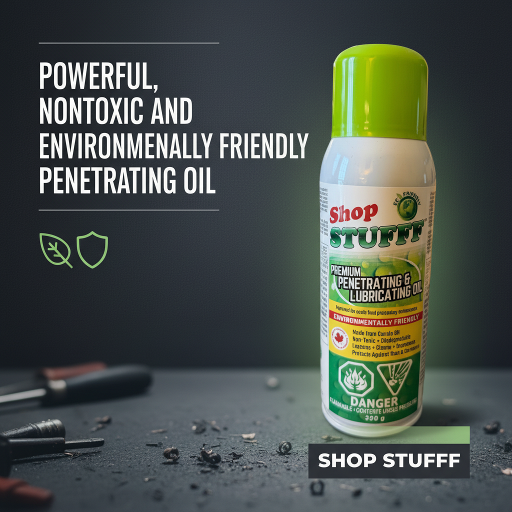Shop STUFFF, a Canadian-made, biodegradable penetrating oil, offers mechanics and farmers a non-toxic, effective alternative to traditional oils, ensuring safer work environments and eco-friendly equipment care.